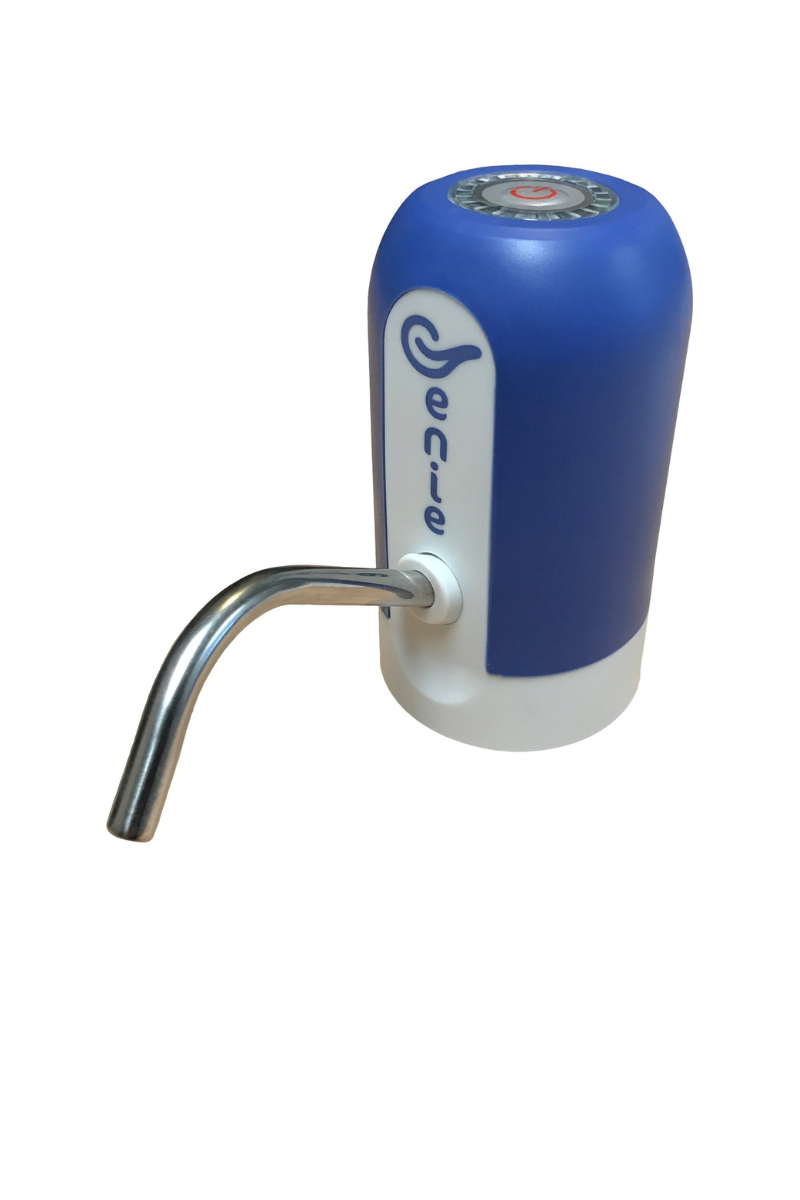 Rechargeable automatic pump fits 3–5 gallon bottles with a 55mm crown neck. Convenient and portable.